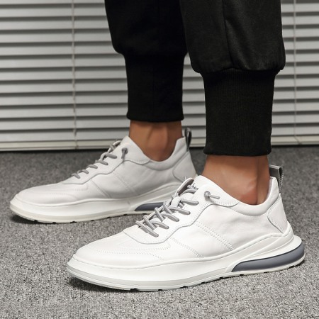 Summer New Pure Leather White Shoes Men's Trend Casual Shoes Sneakers Men's Shoes White Trendy Shoes